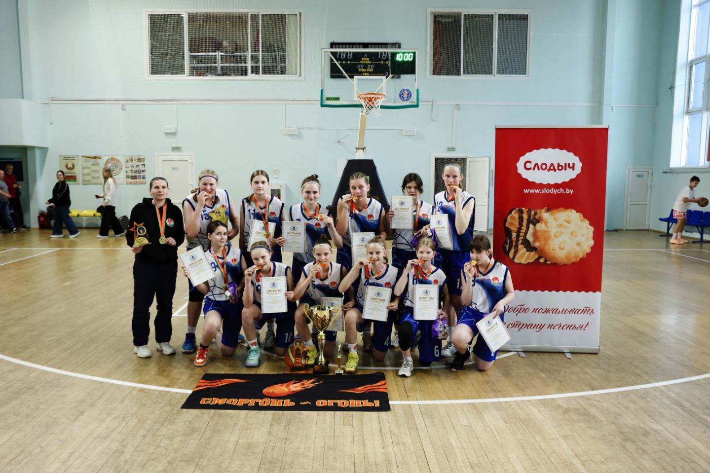Спасибо всей команде Сморгонской СДЮШОР за победу: Шульжицкая София, Счастливцева Дарья, Вишняк Ксения, Пашковская Александра, Шандора Валерия, Шандора Анна, Бортко Светлана, Касперко Анна, Сидорович Илона, Леошко Мария, Минцевич Карина, Мрочко Ксения и тренеру Рапацевич Т.Н.