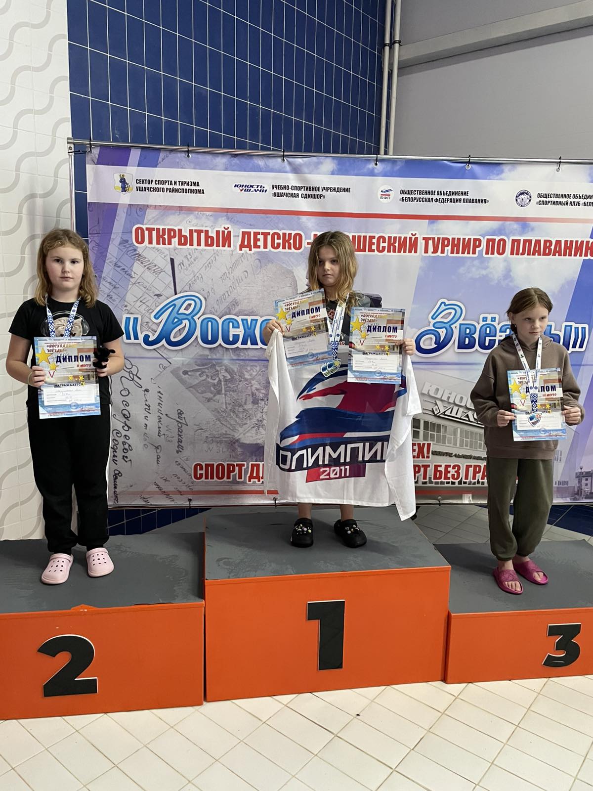 Поздравляем тренера Осипович Наталью Валерьевну и команду отделения плавания Сморгонской СДЮШОР занявшую почетное II место в смешанной эстафете 6х25 м вольным стилем среди спортсменов 6-9 лет на турнире по плаванию «Восходящие Звезды» в г.п.Ушачи